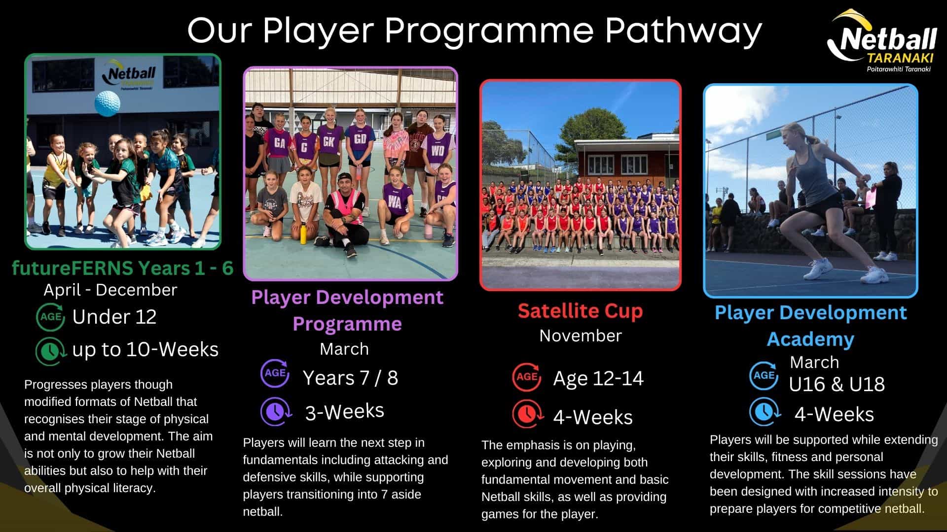 Player Development is about improving player's in all aspects of netball, with reinforcement of the basic fundamentals skills, fitness, game simulation and team work. Development comes within the love and enjoyment of the game and the growth and motivation within the player.